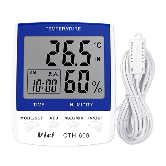 CTH-609 dual temperature testing thermo-hygrometer can be placed or hung in living rooms, bedrooms, offices, warehouses, specially designed for monitoring outdoor temperatures in cold winters and monitoring temperatures in refrigerated warehouses. Monitor the indoor environment temperature and humidity and outdoor temperature at any time, monitor the temperature and humidity outside the frozen warehouse and the internal temperature, ensure a comfortable space and sleeping conditions, and ensure that the stored materials will not deteriorate.
