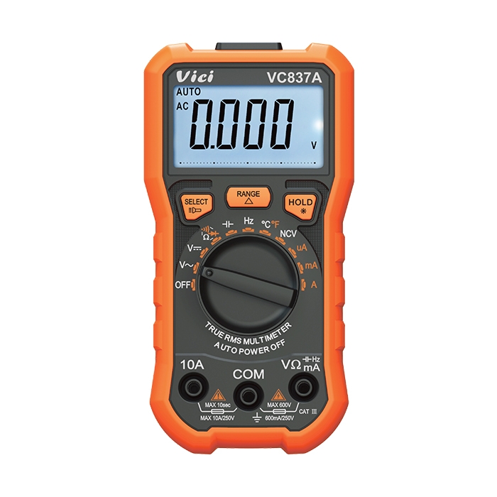 VC837A 真有效值测量,模拟条显示,NCV测量,读数保持,背光显示,照明功能。