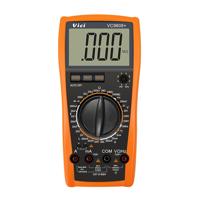 VC9808+ 电容最大2000uF,电阻最大2000MΩ量程测量,电感,频率,温度测量,防高压打火设计。