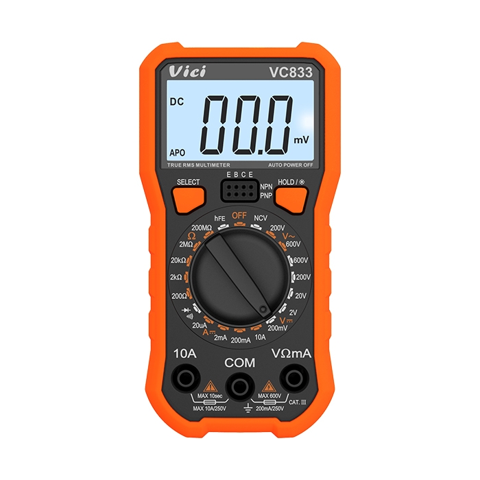 VC833 手动量程,真有效值测量,NCV测量,读数保持,背光显示。