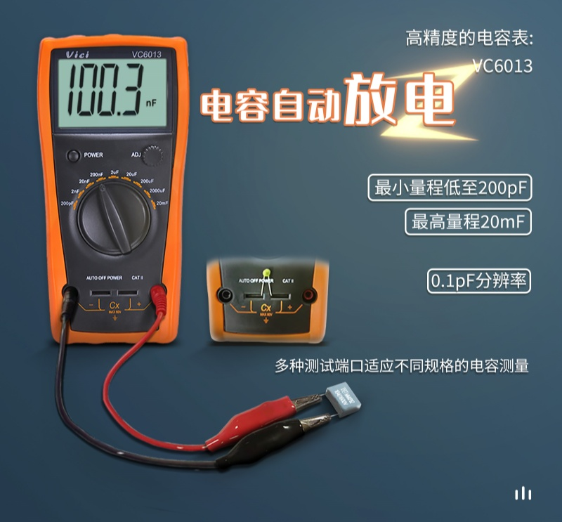 VC6013 高精度数字电容表,电容自动放电不烧表。